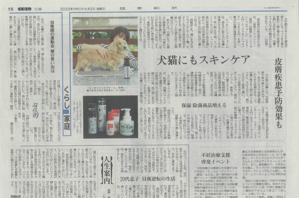 2023.08.01 PETCARE(ペットケア)が読売新聞全国版で取り上げられました ショップからのお知らせ PETCARE(ペットケア)が令和5年6月2日の読売新聞全国版に記事として商品を取り上げて頂きました。